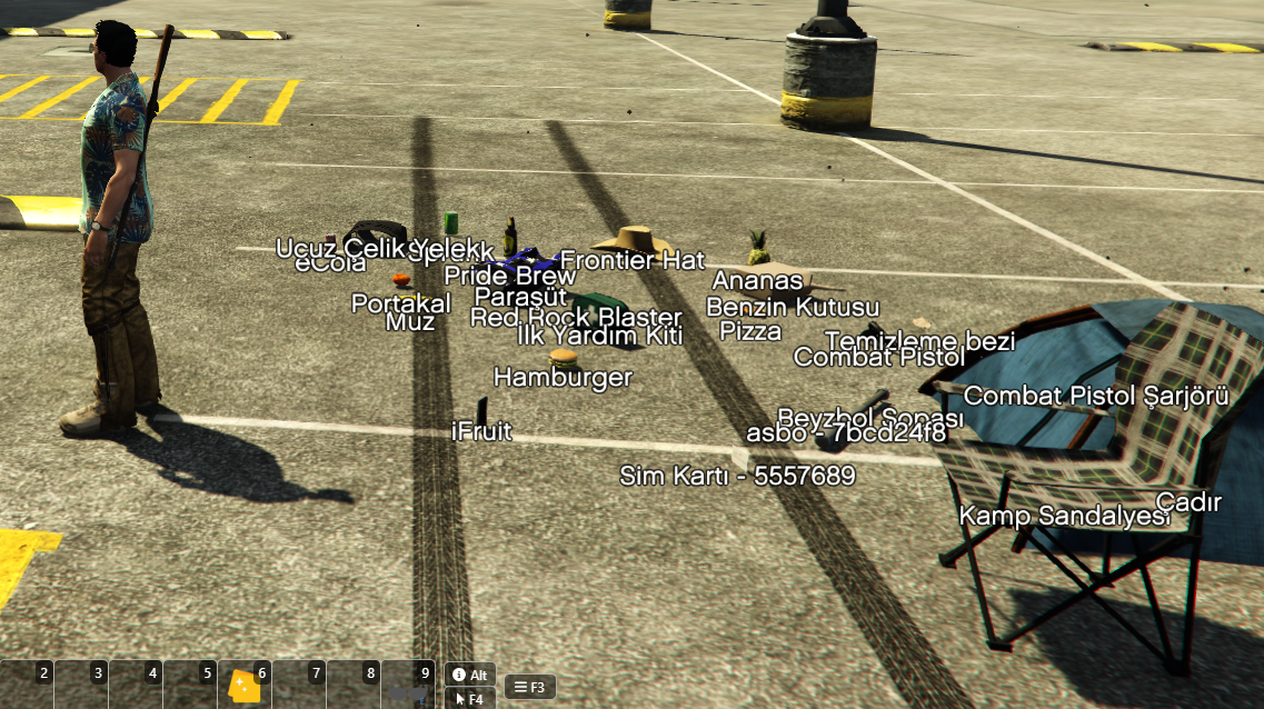 Eşyayı yerden toplamak için, ALT tuşuna basılı tutarak eşyaya odaklanıp E tuşuna basmanız gerekir.